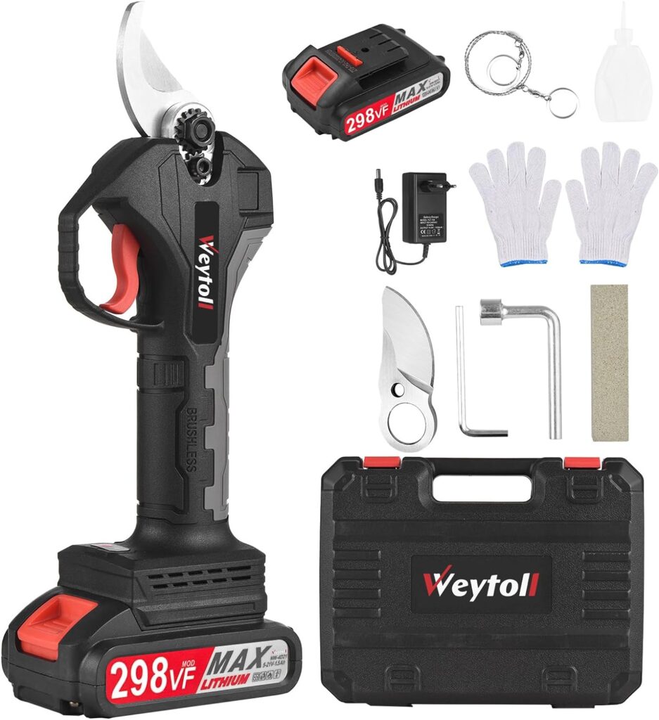 Tijeras de Podar Batería Weytoll Tijeras Podar Electricas sin Escobillas de 21 V con 2 Baterías de Litio de 1,5 Ah